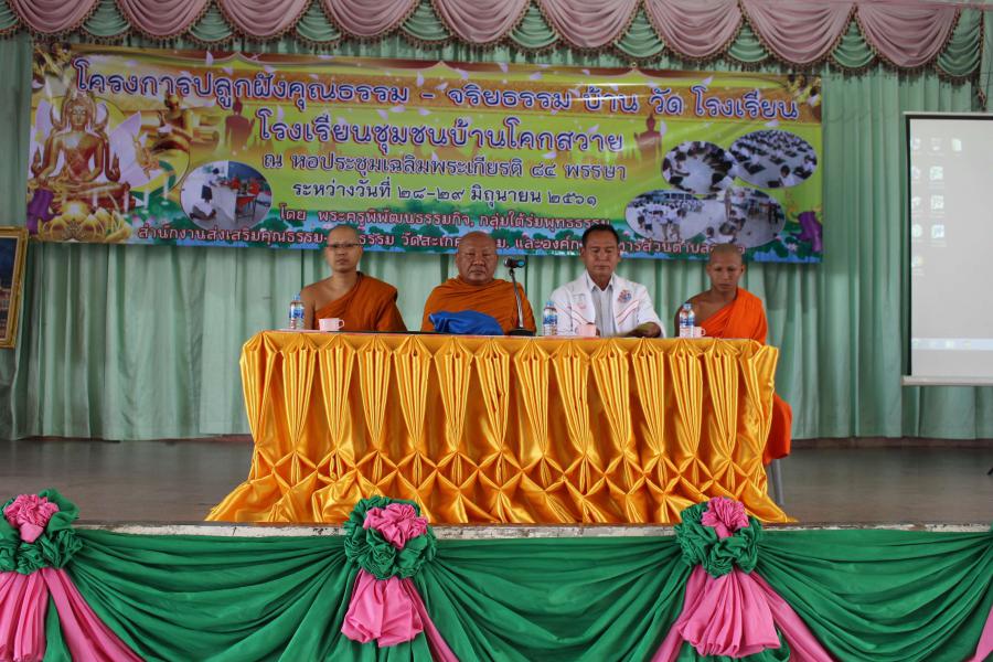 โครงการปลูปฝังคุณธรรม-จริยธรรม บ้าน วัด โรงเรียน โรงเรียนชุมชนบ้านโคกสวาย โรงเรียนบ้านโคกหนองไผ่ ระหว่างวันที่ 28-29 มิถุนายน 2561 ณ หอประชุมเฉลิมพระเกียรติ 84 พรรษา โรงเรียนชุมชนบ้านโคกสวาย S:0