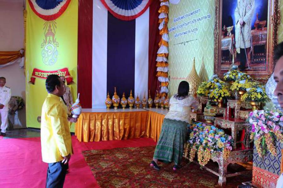 พิธีวางพานพุ่มเงิน-พุ่มทอง และจุดเทียนชัยถวายพระพรสมเด็จพระเจ้าอยู่หัว มหาวชิราลงกรณ บดินทรเทพยวรางกูร เนื่องในวันคล้ายวันเฉลิมพระชนมพรรษา S:0